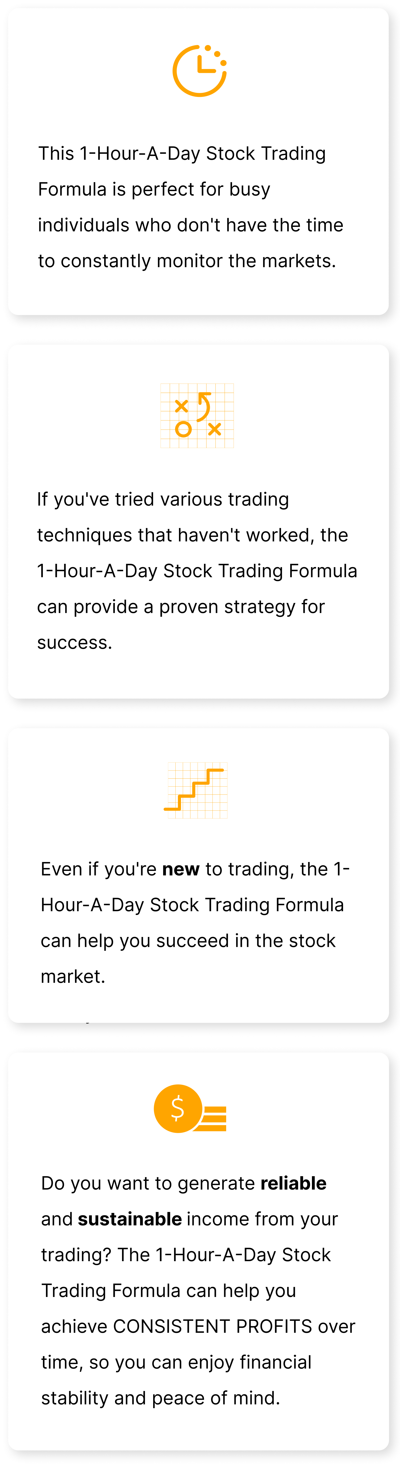 This 1-Hour-A-Day Stock Trading Formula is perfect for busy individuals who don't have the time to constantly monitor the markets.